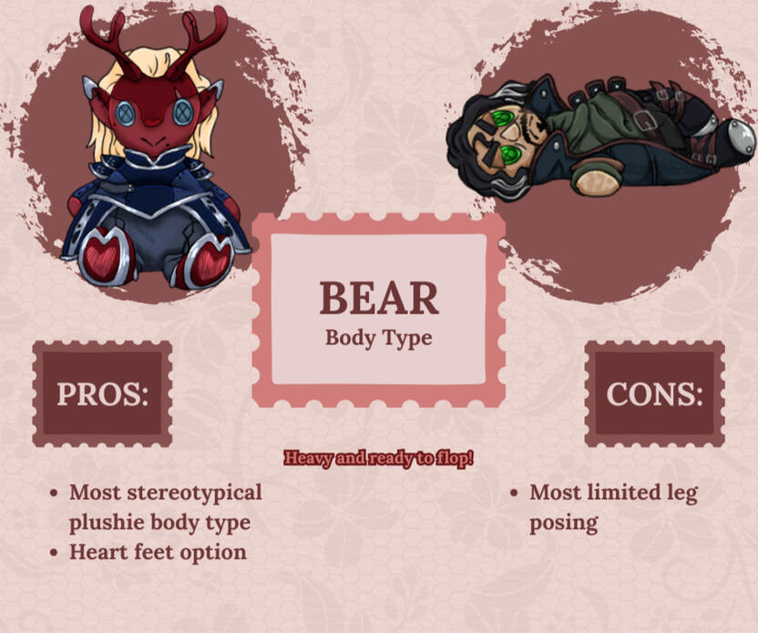 *Due to the nature of stuffed plushies and the sizing, design details in your character reference most likely will need to be simplified.